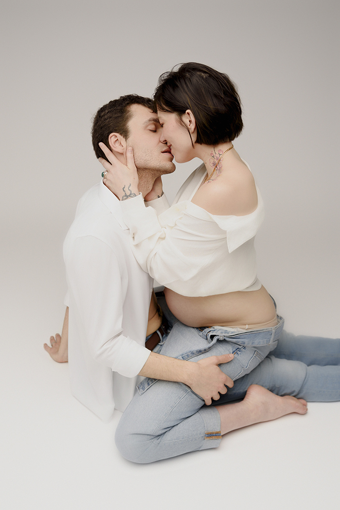 C’est autour du 7ᵉ mois, lorsque le ventre est joliment arrondi mais la fatigue encore légère, que je vous accueille pour votre séance photo.